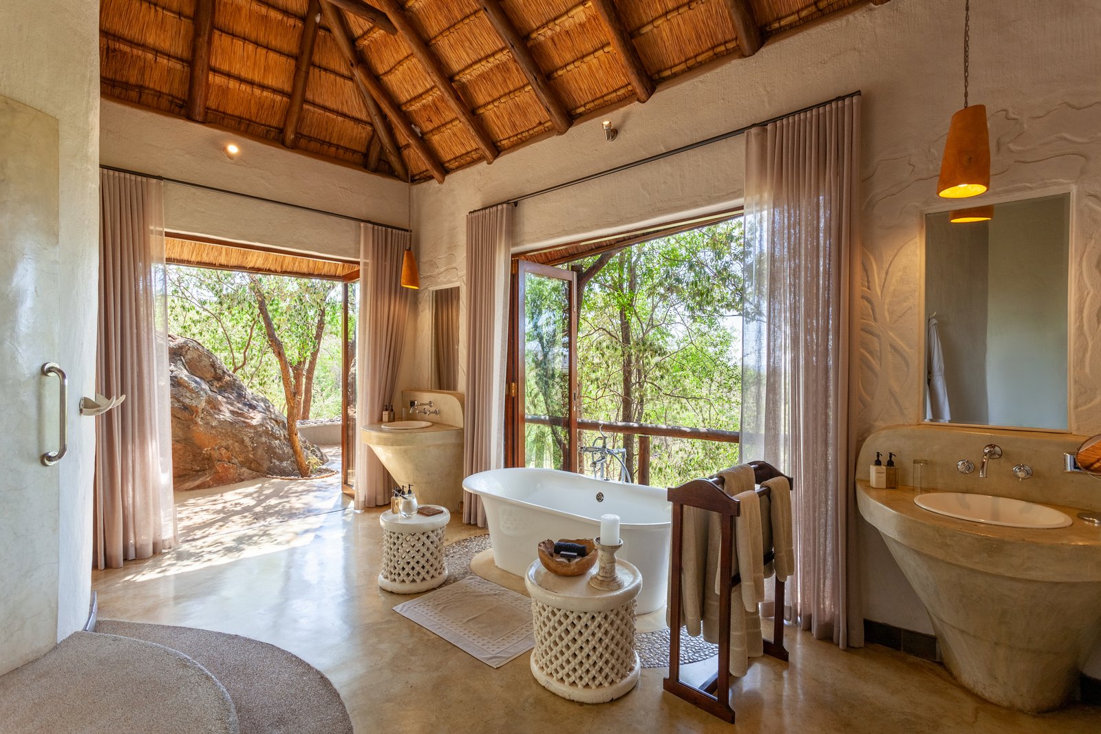 Die Madikwe Hills Private Game Lodge liegt im Herzen des malariafreien Madikwe Game Reserve im Nordwesten Südafrikas und bietet eine exklusive Kombination aus luxuriösem Komfort und authentischer Safari-Erfahrung. Die Lodge verfügt über zehn grosszügige Glas-Suiten mit privater Terrasse, Plunge Pool sowie Innen- und Aussendusche – ideal, um die afrikanische Tierwelt direkt von Ihrem Deck aus zu beobachten. Auf spannenden Pirschfahrten im offenen Geländewagen erleben Sie die legendären Big Five hautnah, während geführte Buschwanderungen Ihnen Einblicke in die faszinierende Natur und kleinere Wildtiere ermöglichen. Abends geniessen Sie kulinarische Gourmet-Erlebnisse unter dem afrikanischen Sternenhimmel – ob in der traditionellen Boma oder bei einem privaten Dinner auf Ihrer Suite-Terrasse. So verbindet die Madikwe Hills Private Game Lodge Luxus, Abenteuer und Erholung zu einem unvergesslichen Safari-Aufenthalt.